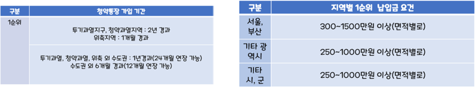 3. 국민 주택이랑 민영 주택마다 다르지만 동시에 충족하고 싶으면 10만원씩 납입해서 우선순위를 받자(금액에 대한 내용은 위를 참고)