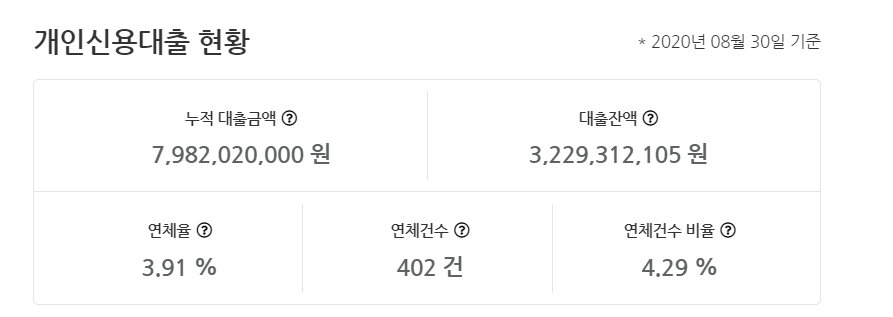 현재 회사가 공개하고 있는 개인신용 대출 현황은 다음과 같습니다.