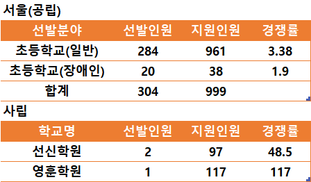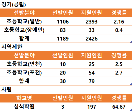 2021 초등임용고시 티오 (본티오, 최종티오)